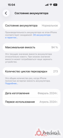 Айфон 15 про 128, акб 94%, в идеальном состоянии