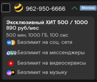 Тариф на ваш номер в наличии с официальным оформлением быстро, удобно и надежно. Сохраните наш номер 928-299-96-99 и пришлите смс на ватсап знак (+) отправим Вам условия.
