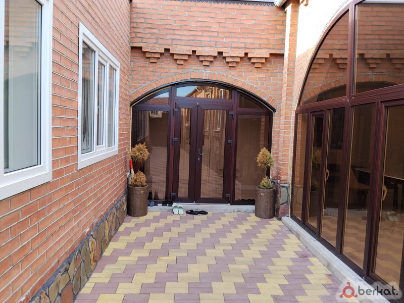 Дом 2-х этажный, но 4-х уровневый. Четыре спальни, два холла, зал, гостиная, кухня, одна большая ванная общая и две маленьких ванных комнат из спален. Из кухни выход на террасу и навес