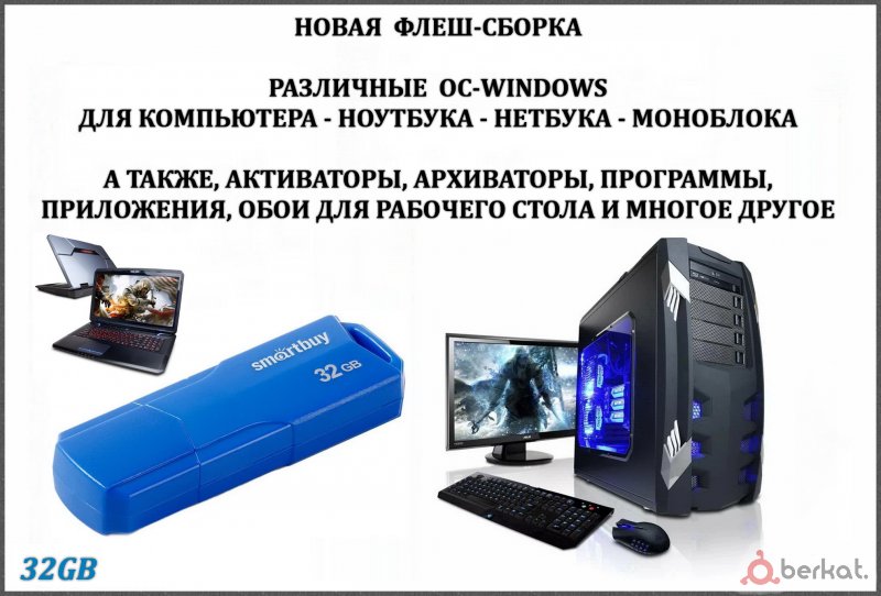 ▪ Новые загрузочные флешки объемом 16/32GB ▪ Установлено 4/8-различных ОC-Windows (см.фото) ▪ Установлены программы и приложения для фото, офиса, интернета, проверки накопителей, диагностики-мониторинга компьютера-ноутбука-видеокарты-системы ▪ Установлены архиваторы и активаторы для windows ▪ Также, установлено много обоев для рабочего стола ▪ Версии ОС-Windows с выбором активации уже при установке (ключ не нужен) ▪ Если активация не удалась, то на флешке есть и другие активаторы ▪ Работает идеально и грузится быстро ▪ Инструкция (в печатном виде) тоже прилагается ▪ В наличии флеш-сборки: 16GB-1500/32GB-2000 ▪ Если не ответил на звонок, пишите в WhatsApp ▪