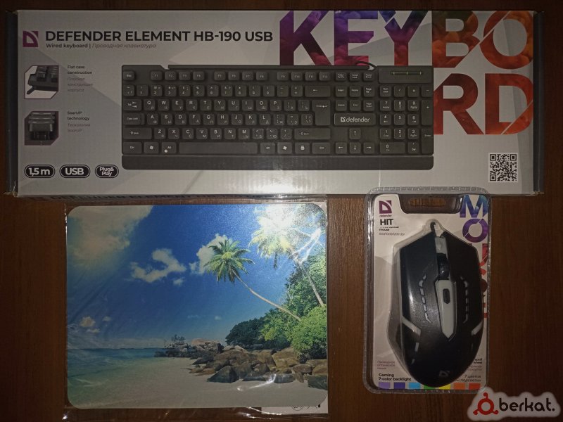 ▪ Комплект для компьютера-ноутбука-моноблока от бренда Defender (клавиатура-мышь-коврик) ▪ Подключение клавиатуры: проводное ▪ Тип клавиатуры: мембранная ▪ Общее количество клавиш: 104 ▪ Интерфейс подключения: USB Type-A ▪▪ Мышь с разноцветной RGB-подсветкой ▪ Общее количество кнопок мыши: 4 ▪ Тип сенсора мыши: оптический светодиодный ▪ Интерфейс подключения: USB Type-A проводная мышь ▪▪ Коврик для мыши с рисунком остров-пальм ▪ Материал полиэстер ▪ Размеры: 250x200х2мм ▪ Комплект подойдет для офиса, так и для игр ▪ Новые в упаковке ▪ Также в наличии есть и другие различные комплекты ▪ Если не ответил на звонок, пишите в WhatsApp ▪