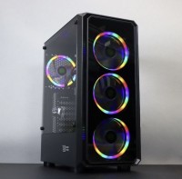 Стильный корпус формата ATX / Micro-ATX / Mini-ITX. Установлены 4 RGB вентилятора – отличное охлаждение и красивый внешний вид. — Боковая закалённая стеклянная панель — Поддержка длинных видеокарт — Места для SSD и HDD — Удобный кабель-менеджмент — Верхняя панель: 2×USB + аудио Подойдёт для игровой сборки.
