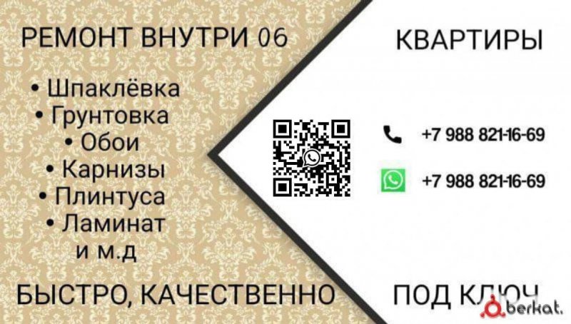 Ремонт под ключ ✅Сантехника ✅Электрика ✅подвесные потолки ✅ натяжные потолки ✅Штукатурка ✅Кафель ✅Обои ✅Краска ✅Ламинат ✅Карниз ✅плинтус гарантия качества ✅опыт более 10ти лет ✅за работу отвечаем