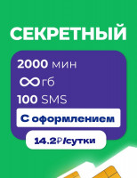 Безлимитный интернет. 2000мин. 14.2₽/сутки С оформлением